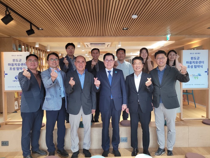 이번 협약은 지난 1월 도서 주민들의 건강관리와 복리증진을 위해 완도군과 대우재단이 건강돌봄센터를 설치하기로 한 데 이어 체결한 것으로 마음치유센터는 구 완도대우병원(노화읍 소재) 부지에 조성된다.