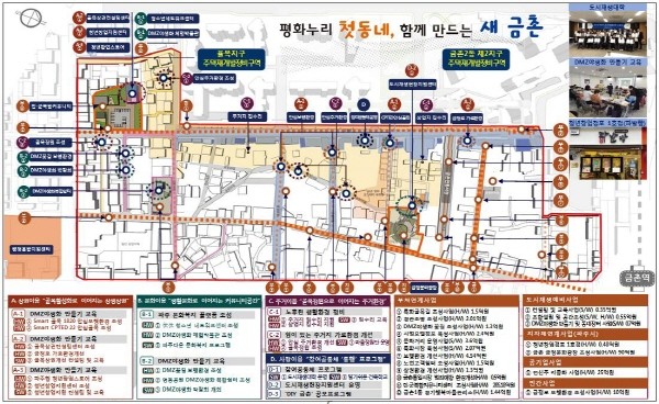 구도심으로서 발전 도약점이 절실하던 파주시 금촌동에서는 골목상권 컨설팅센터를 조성하고 금정로 가로환경을 개선하는 ‘새금촌 마켓 스트리트(Market street)’가 핵심이다. DMZ(비무장지대) 야생화를 활용한 주거환경 및 가로경관 정비 등도 계획됐다.
