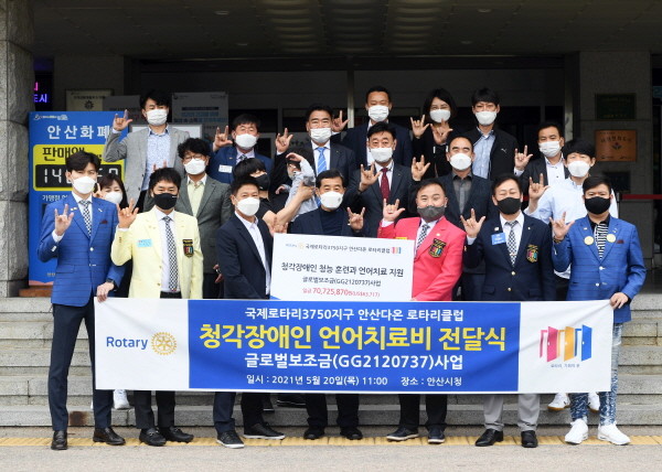 글로벌 국제로타리본부의 지원을 받아 국제로타리3750지구 다온로타리클럽에서 기탁한 성금은 관내 장애인단체(경기도농아인협회 안산시지회) 회원 중 청각장애부모의 청각언어장애자녀 또는 비장애부모의 청각언어장애자녀들의 ▲청능훈련 ▲언어치료 ▲심리치료 등 의료지원에 쓰일 예정이다.