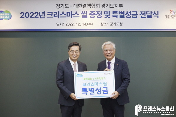 [프레스뉴스] 장현준 기자= 김동연 경기도지사가 14일 도청에서 대한결핵협회 경기도지부로부터 결핵퇴치기금 마련을 위한 크리스마스 씰을 증정받고 성금 200만 원을 전달했다.