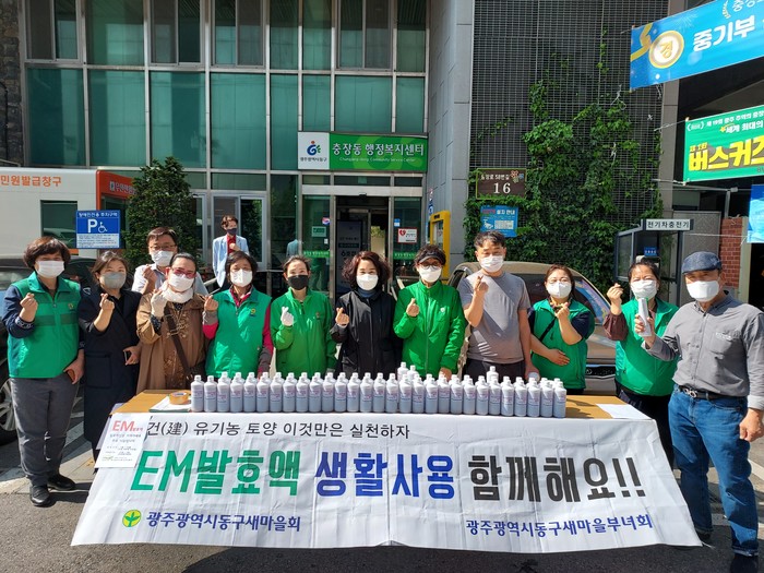 [광주=프레스뉴스] 강래성 기자= 광주 동구 충장동 새마을부녀회(회장 이금숙)는 지난 20일 관내 주민을 대상으로 친환경 세제(EM) 무료 나눔 행사를 진행했다고 밝혔다.