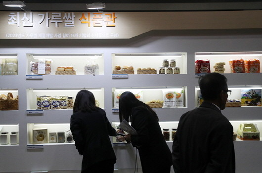 | ▲서울 서초구 aT센터에서 열린 ‘2023 대한민국 식품대전’에 가루쌀로 만든 제품들이 전시돼 있다. (사진= 뉴스1) |