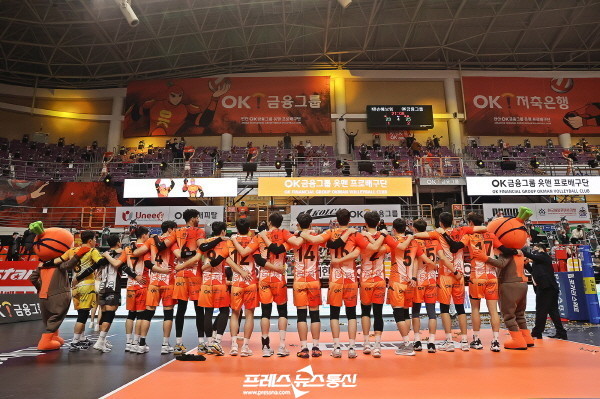 [프레스뉴스] 강보선 기자= 안산시(시장 윤화섭)를 연고지로 삼고 있는 OK금융 읏맨 배구단이 오는 9일 상록수체육관에서 열리는 2021-2022 V-리그 1라운드 마지막 홈경기인 삼성화재전에 안산시민 500명을 무료로 초대한다고 5일 밝혔다.