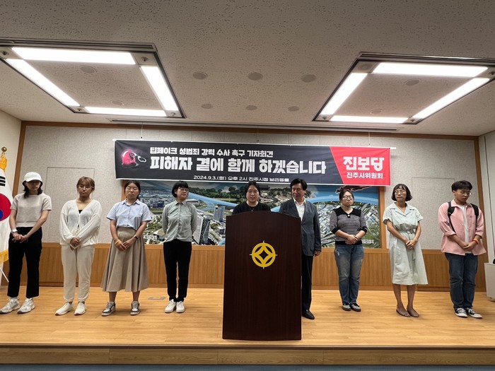 | ▲진보당 진주시위원회는 3일 진주시청 브리핑룸에서 기자회견을 열고 딥페이크 성범죄 가해자에 대한 집요한 수사와 강력한 처벌" 할것을 촉구했다. |