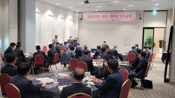 [전남=프레스뉴스] 강래성 기자= 전라남도교육청이 20일(수)과 21일(목) 강진케이스테이에서 관내 22개 교육지원청 행ㆍ재정지원과장, 나주시 외 4개 지역센터장을 대상으로 1박 2일 간의 직무교육을 실시했다.