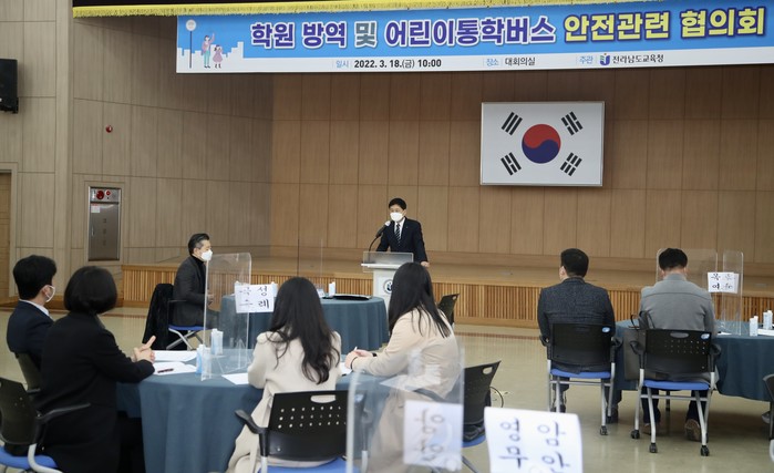 [전남=프레스뉴스] 강래성 기자= 전라남도교육청(교육감 장석웅)이 3월 18일(금) 청사 2층 대회의실에서 학원방역 및 어린이 통학차량 안전관리 협의회를 갖고 코로나19 위기 속 새 학기를 맞은 학교정상화 방안을 모색했다.