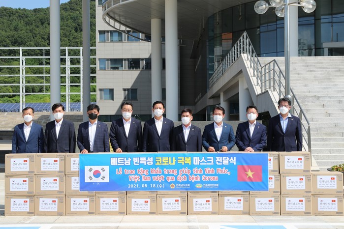 [전남=프레스뉴스] 강래성 기자= 전남도의회는 18일 코로나19 재확산으로 어려움을 겪고 있는 해외교류의회 베트남 빈픅성 인민의회에 마스크 1만장을 전달했다.