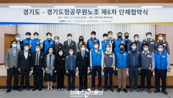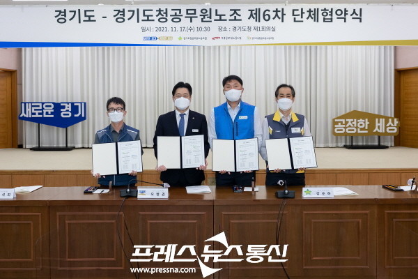 [프레스뉴스] 강보선 기자= 경기도와 도청 3개 공무원노조가 직장 내 괴롭힘 근절과 모성보호 등이 담긴 단체협약을 체결했다. 이번 협약은 도청 내 복수노조가 교섭창구 단일화를 통해 진행한 최초 협약이다.