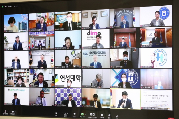 안동광 경기도 농정해양국장과 도내 29개 대학교 총장, 정용왕 농협중앙회 경기지역본부장은 8일 경기도청에서 ‘경기도 대학생 농촌일손돕기 사회봉사활동 지원 업무협약’을 비대면 화상으로 체결했다.