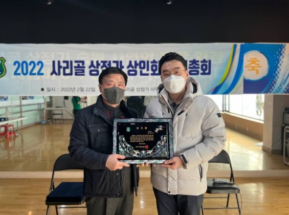 [프레스뉴스] 김대일 기자= 김남국 국회의원(안산단원을, 오른쪽)이 22일 열린 안산시 사리골 상점가 상인회 정기총회에서 상점가 숙원사업 해결에 기여한 공로를 인정받아 감사패를 받았다.
