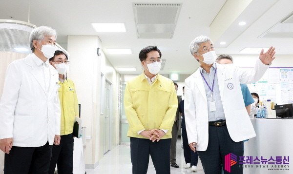 | ▲ 1일 오전 김동연 경기도지사가 성남시의료원에서 코로나19 재유행 대응 현장 점검을 하고 있다.(사진=경기도) |