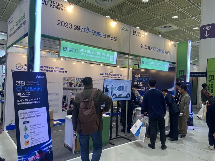 ▲영광군은 서울 코엑스에서 열린 ‘EV 트렌드 코리아 2023’에 참가해 2023 영광 e-모빌리티 엑스포 홍보관을 운영했다.(사진제공=영광군) |