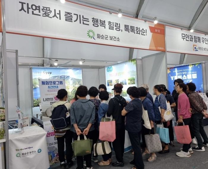 화순군보건소는 ‘자연愛(애)서 즐기는 행복 힐링, 톡톡 화순!’이라는 주제로 참여해 나만의 펫스톤(반려돌) 및 한방 천연방향제 만들기 체험, 한방차 재료와 농특산품 전시, ‘2023 화순 고인돌 가을꽃 축제’ 등을 알리고, 금연 상담, 영양 등 건강정보를 제공하여 박람회장을 찾는 방문객들에게 큰 호응을 얻었다.