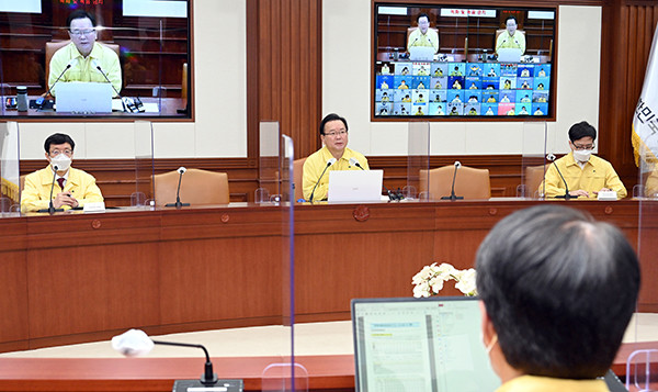 ▲ 김부겸 국무총리가 11일 정부서울청사에서 열린 코로나19 중대본 회의를 주재하고 있다. (사진=국무조정실) |