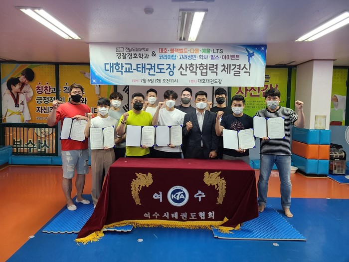 [전남=프레스뉴스] 강래성 기자=전남도립대학교(총장 박병호)는 여수.광양 등 태권도협회 소속 21개 체육관과 청년 맞춤형 진로.지도 활성화를 통한 경쟁력 있는 인재 양성을 위해 상생 업무협약을 했다.