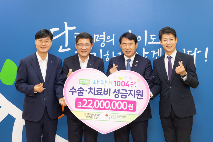농협중앙회 광주지역본부는 이번 기부를 통해 총 2,200만 원을 광주사회복지공동모금회에 기탁했다. 이는 임직원의 자발적 참여를 통해 지역사회 어려운 이웃에 의료비를 지원하는 나눔과 상생의 활동인 ‘사랑의 1004운동’의 일환으로 이뤄졌다. 기부금은 귀중증질환 등으로 어려움을 겪는 중에도 배움을 포기하지 않는 학생 22명(초 16명, 중 6명)에게 치료비 항목으로 각각 100만 원씩 지원된다.