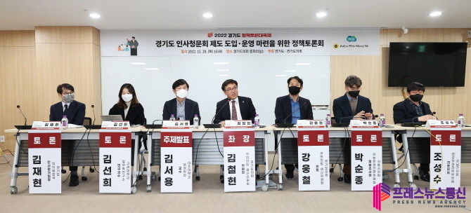 [프레스뉴스] 김대일 기자= 경기도의회 국민의힘 쇄신위원회 김철현 위원장(국민의힘, 안양2)이 좌장을 맡은「경기도 인사청문회 제도 도입·운영 마련을 위한 정책토론회」이 12월 20일(화) 경기도의회 중회의실1에서 개최됐다.
