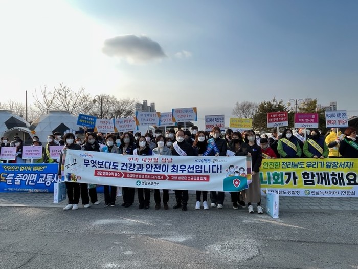 [전남=프레스뉴스] 차윤기 기자= 전남 영광군(군수 강종만)은 지난 19일 설 연휴를 앞두고 방역 친화적 명절 분위기 조성과 크고 작은 화재 발생 및 귀성 차량으로 인한 교통량 급증으로 화재·교통사고 사전예방을 위하여 코로나19 방역 동참 및 안전 캠페인을 실시했다.