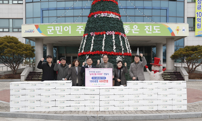 6일 진도군에 따르면 농협진도군지부는 고령농, 영세농 등 취약계층 농업인을 위해 흑돈불고기소시지 등 총 6개 품목의 축산물(6만원)로 구성된 농축산물 꾸러미 100세트(총 600만원 상당)를 전달했다.