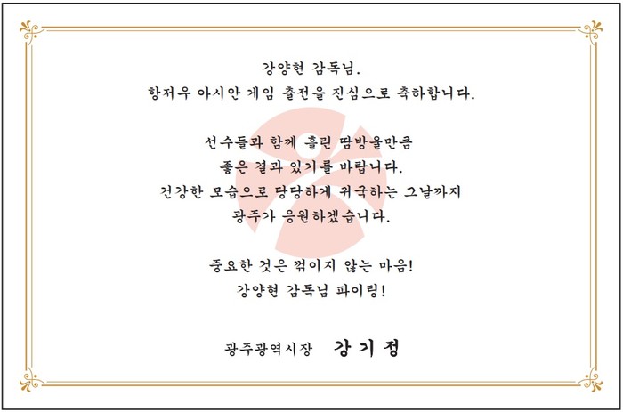 | ▲격려카드(강양현 감독)/광주시 제공 |