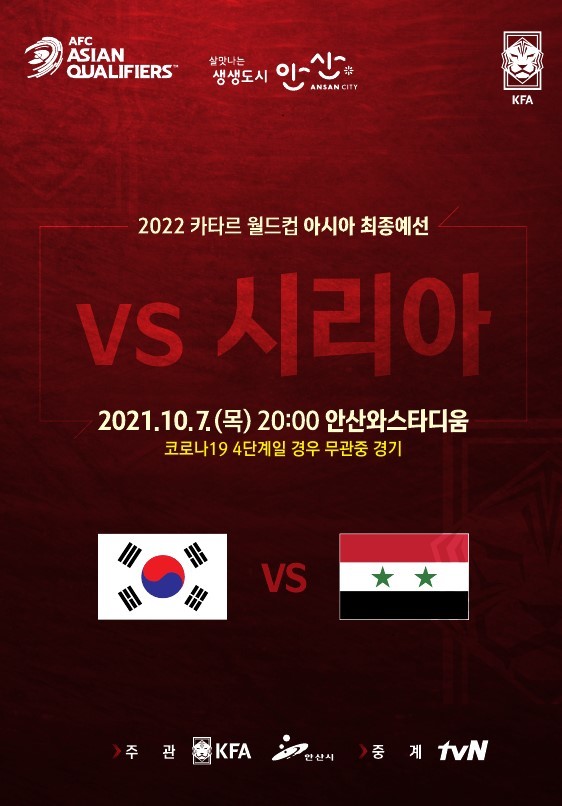 경기가 치러지는 7일은 코로나19 수도권 사회적 거리두기 4단계로 무관중 경기로 진행된다. 직접 현장에서 볼 수 없다는 아쉬움이 크지만, 경기장 바깥에서 안산시민 모두가 우리 대표팀의 승리를 한마음으로 응원한다.