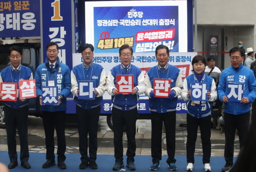 민주당은 투표일인 4월 10일을 '윤석열 정권 심판의 날'로 규정하고, 현 정부 출범 후 2년간 피폐해진 민생 등 실정을 심판해야 한다며 표심을 호소했다.