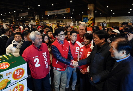 국민의힘 한동훈 비상대책위원장 겸 총괄선대위원장을 비롯한 중앙선대위 관계자들은 이날 0시 서울 송파 가락시장에서 첫 공식 선거운동에 나섰다.