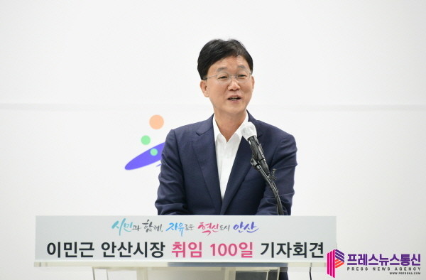 | ▲이민근 안산시장이 6일 시청 대회의실에서 열린 민선8기 출범 취임 100일 기자회견을 하고 있다.(사진=안산시) |