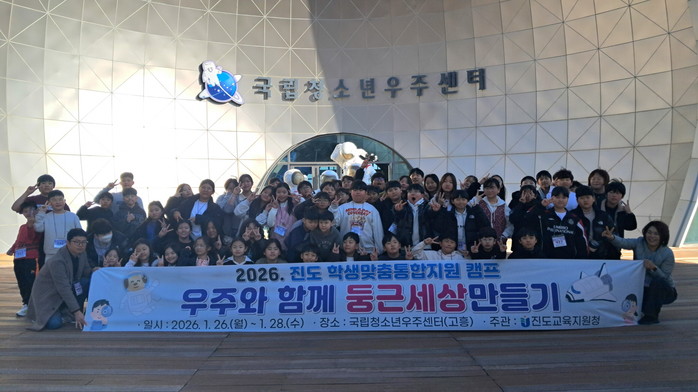 [진도=프레스뉴스] 신상균 기자= 진도교육지원청(교육장 김 미)은 1월 26일부터 28일까지 관내 초·중학생 60명을 대상으로 국립청소년우주센터에서 「학생맞춤통합지원 우주체험 현장체험학습」을 운영하였다.
