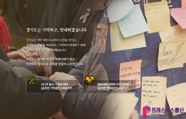 [프레스뉴스] 장현준 기자= 경기도가 10.29 참사, 튀르키예·시리아 지진 등 국내외적 재난의 교훈을 잊지 않고 피해자와 연대할 수 있도록 기존에 운영하던 ‘온라인 추모관’을 ‘기억과 연대’로 확대 운영한다고 16일 밝혔다.