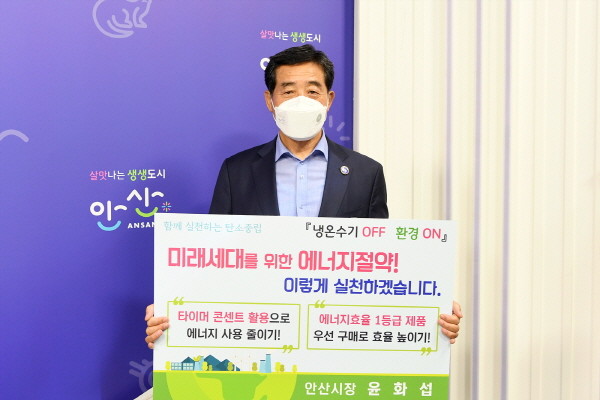 [프레스뉴스] 강보선 기자= 윤화섭 안산시장은 생활 속 에너지 절약 실천운동 확산을 위한 ‘냉온수기OFF 환경ON’ 챌린지에 동참했다.