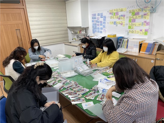 | ▲ 유아교육 강사들의 사진접 제작 모습/전라남도교육청 제공 |