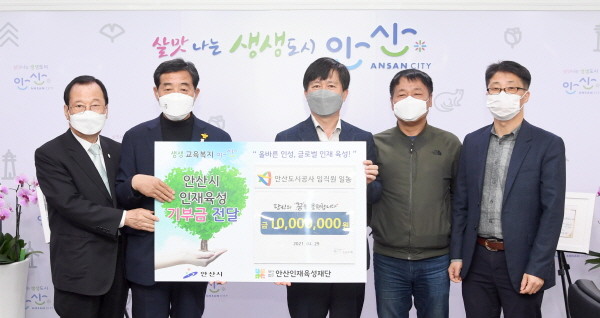 | ▲ (재)안산인재육성재단, 안산도시공사 임직원으로부터 후원금 1천만 원 기탁 받아 |