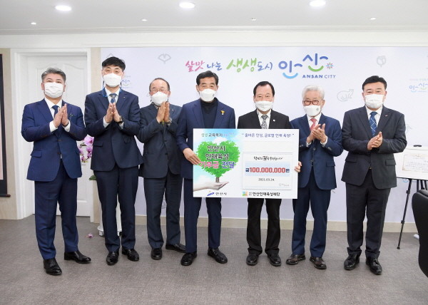 [프레스뉴스] 강보선 기자= (재)안산인재육성재단(이사장 윤화섭)은 24일 재단 이사회 임원과 농협중앙회 안산시지부로부터 기부금 1억 원을 기탁 받았다.