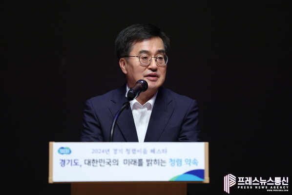 | ▲26일 오후 경기도청 1층 다산홀에서 열린 경기 청렴이음 페스타에서 김동연 경기도지사가 인사말을 하고 있다.(사진=경기도) |