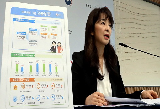 | ▲서운주 통계청 사회통계국장이 12일 오전 정부세종청사에서 2024년 3월 고용동향 결과를 발표하고 있다.(사진= 뉴스1) |