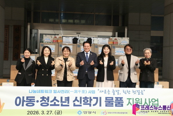 [프레스뉴스] 장현준 기자= 안양시(시장 최대호)는 새 학기를 맞아 관내 취약 계층 아동과 청소년 926명에게 영양제와 가방 등 맞춤형 응원 물품을 지원한다고 27일 밝혔다.
