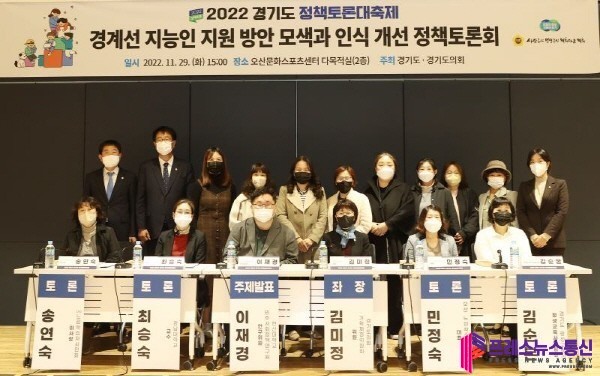 [프레스뉴스] 김대일 기자= 경기도의회 기획재정위원회 김미정 의원(더불어민주당, 오산1)이 좌장을 맡은「경계선지능인 지원 방안 모색과 인식 개선 정책토론회」가 11월 29일(화) 오산문화스포츠센터 2층 다목적실에서 개최됐다.
