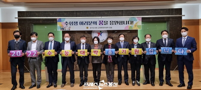 [프레스뉴스] 강보선 기자= 경기도의회 교육행정위원회(위원장 남종섭)는 16일(화) 경기도교육청 본청에 대한 총괄 행정사무감사 도중 18일 실시 예정인 대학수학능력시험에 응시하는 경기도 내 수험생에 대한 격려와 응원의 메시지를 보냈다.