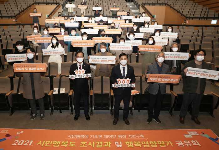 광산구는 26일 광산문화예술회관에서 ‘2021 시민행복도 조사 결과 및 행복영향평가 공유회’를 개최했다.