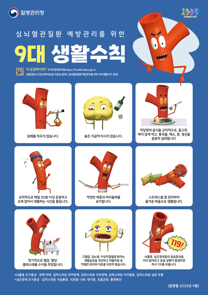 이에 중증질환으로 발전하기 전 30~40대부터 경각심과 관심을 제고하기 위해 지역 주민대상 심뇌혈관질환 예방관리 9대 생활 수칙 홍보ㆍ캠페인, 혈압, 혈당, 콜레스테롤 무료 검사 및 경로당 중심 이동 건강증진실을 운영할 예정이다.