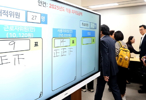 다만 공익위원 심의촉진구간 내에서 노·사가 최종제시안을 제출한 직후 민주노총 추천 근로자위원 4명은 퇴장했고, 재적위원 27명 중 23명이 참여해 투표한 결과 사용자위원(안)으로 의결됐다.