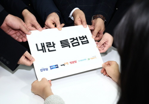 더불어민주당과 조국혁신당, 진보당, 개혁신당, 사회민주당, 기본소득당 등 야6당은 이날 오전 국회 의안과를 찾아 내란 특검법을 제출했다.