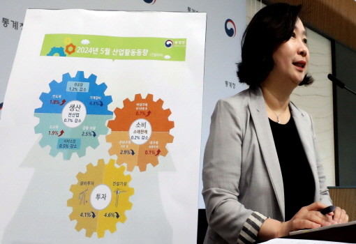 | ▲공미숙 통계청 경제동향통계심의관이 28일 정부세종청사에서 2024년 5월 산업활동동향을 발표하고 있다.(사진= 뉴스1) |