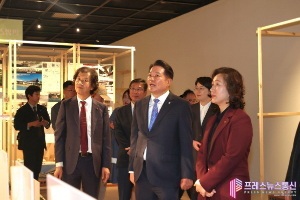 | ▲최대호 안양시장이 지난 9일 김중업건축박물관에서 열린 안양건축문화제에서 다양한 건축작품을 살펴보고 있다.(사진=안양시) |