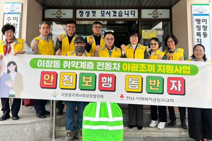 나주시 이창동지역사회보장협의체(공동위원장 김경선, 나종근)는 지난 24일 이창동행정복지센터에서 ‘전동차 야광조끼 지원 사업’ 전달식을 개최했다고 27일 밝혔다.