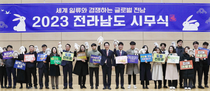 김영록 지사는 이날 도청 왕인실에서 열린 2023년 시무식을 통해 “지난 한 해 도민의 뜨꺼운 성원과 지지로 전남이 세계와 경쟁할 수 있는 기반을 마련했다”며 이같이 말했다.