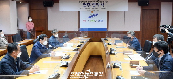 | ▲ 안산시, 기업체 요소수 우선 공급 위해 업무협약식(사진=안산시) |