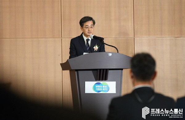 | ▲ 4일 오후 경기도 고양시 킨텍스 1전시장에서 열린 10.4 남북정상선언 15주년 기념 학술회의에서 김동연 경기도지사가 축사를 하고 있다.(사진=경기도) |