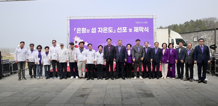 | ▲자은도에서 ‘서울 은평구의 명예 섬’을 지정하는 선포식 및 조형물 제막식을 가졌다./신안군 제공 |